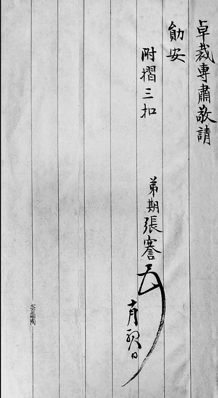 读张謇信函,便知其遵循礼法,严守服丧礼制。如在张父去世后的3年“守制”期内,他在信末常用“制”字。而“期”则用于兄弟姐妹、妻等去世。张謇夫人徐氏于光绪三十四年(1908)三月二十五日去世,他在当年五月有致盛宣怀函,落款“愚弟期张謇”[20]。同年另有数份给孙宝书等人的书信或便条,落款多为“期謇”。由此推断,该佚函中所用“期”字,应与其妻徐夫人有关,即此信可能写于1908年11月1日。