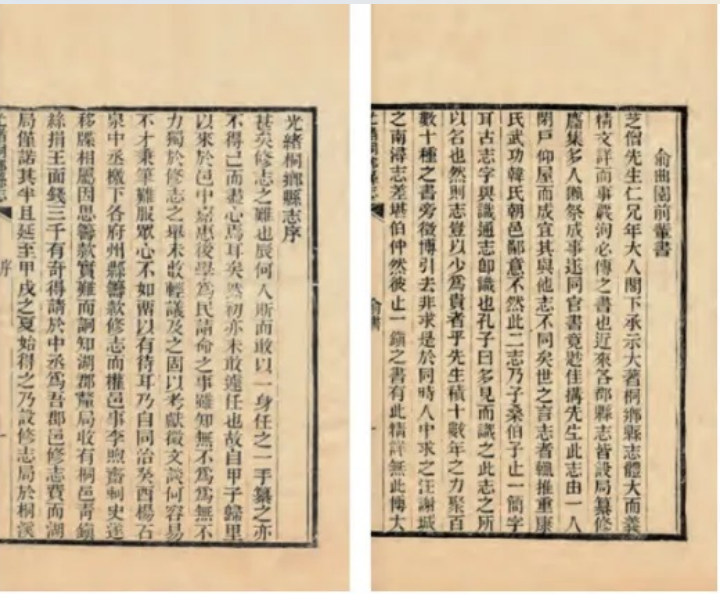 严辰久有纂修桐乡县志的愿望,十历寒暑,耗资4000余元,独力编定《光绪桐乡县志》共32卷。俞樾题签,并盛赞“体大而义精,文详而事核”,为桐乡乡邦文献建设贡献甚伟。