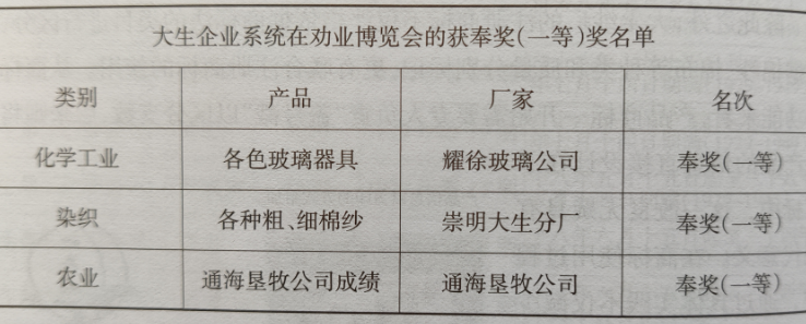 图4:大生企业系统劝业博览会获奖名单(笔者整理)