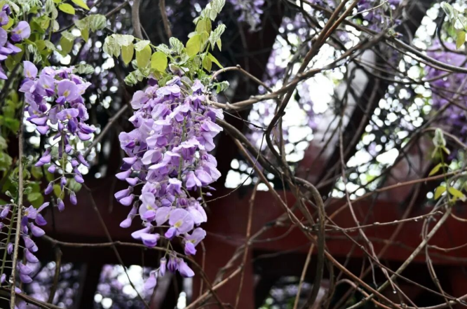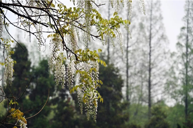 濠南别业含苞待放的白色紫藤。(摄影/梓童)