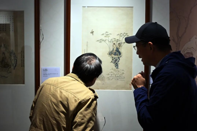 南通市社科联党组书记张华(右一)陪同参观。(摄影/梓童)
