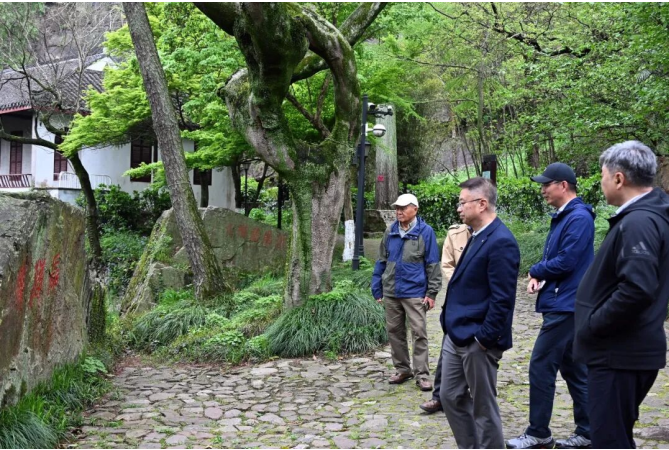 最后,一行人来到狼山北麓。赵绘沈绣之楼内,赵孟頫父子绘画和沈寿师徒刺绣的观音宝像,交相辉映,令人叹服。林溪精舍依山傍水,吴昌硕所题“磊落矶”,风骨犹存。这里曾经是张謇会友静思、吟赏山水的雅地,如今依旧清风拂面,文韵悠长。