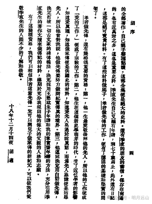 不知胡适是什么时候收到信的,但在12月14日晚,这篇长达2千字序言已经完成。12月15日,胡适在日记中写道:“昨夜写成张孝若的《南通张季直先生传记》的序,今早修改了几处,叫人送去。”