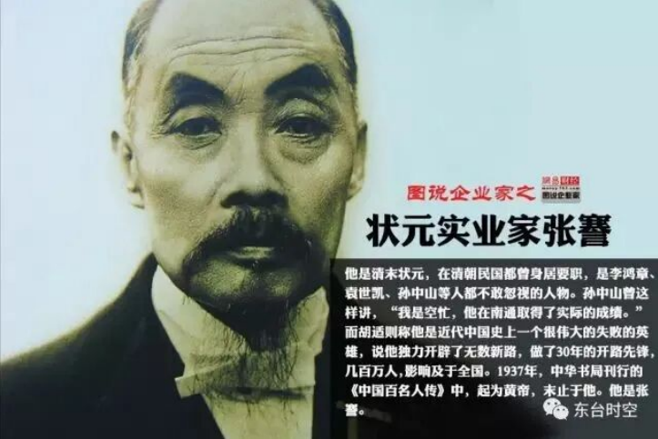张謇,字季直,号啬庵,祖籍江苏常熟,生于江苏通州海门长乐镇(今江苏省南通市海门市常乐镇)。清末状元,中国近代实业家、政治家、教育家,主张“实业救国”。中国棉纺织领域早期的开拓者,上海海洋大学创始人。