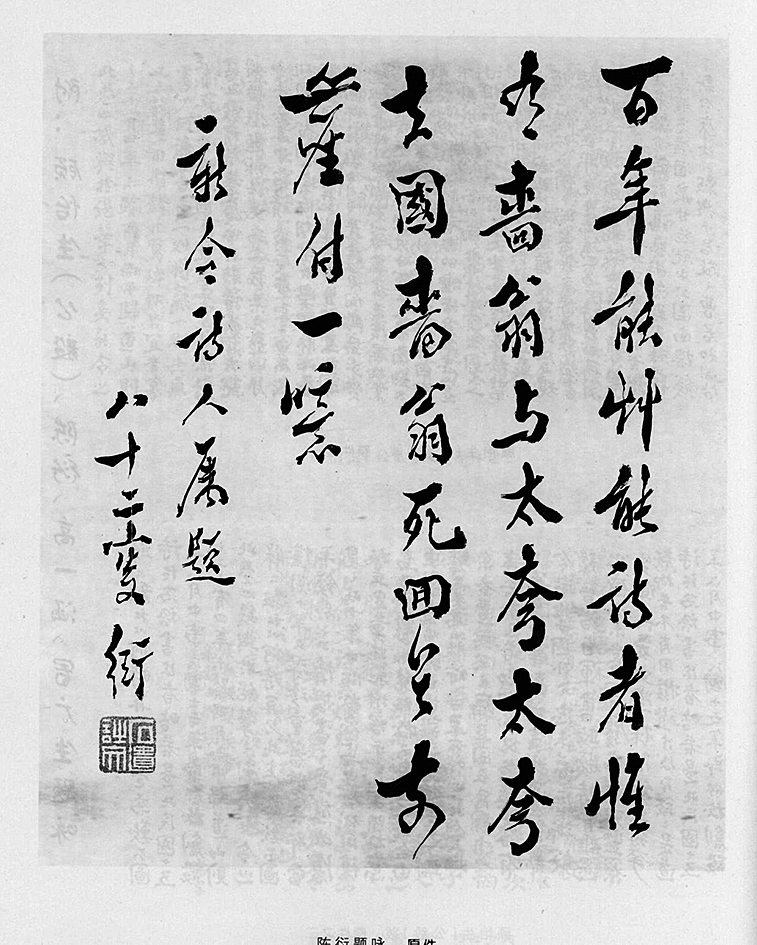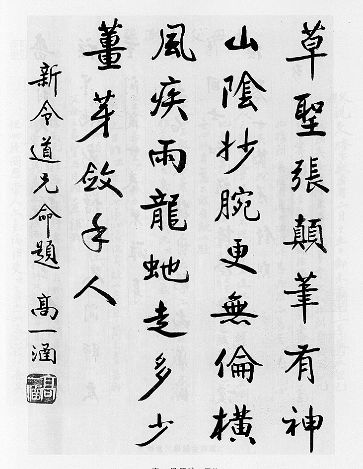 另外是陈石遗和高一涵的题诗,其中有几个异写字不易识,章先生前者未录,后者只录了一半,现在可以依据图片录全。陈石遗诗为:“百年能草能诗者,惟有啬翁与太夷。太夷去国啬翁死,回首前尘付一噫。”款作:“新令诗人属题,八十二叟衍。”高一涵的题诗为:“草圣张颠笔有神,山阴妙腕更无伦。横风疾雨龙蛇走,多少姜芽敛手人。”款作:“新令道兄命题,高一涵。”