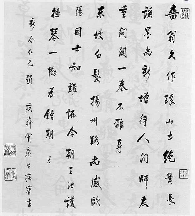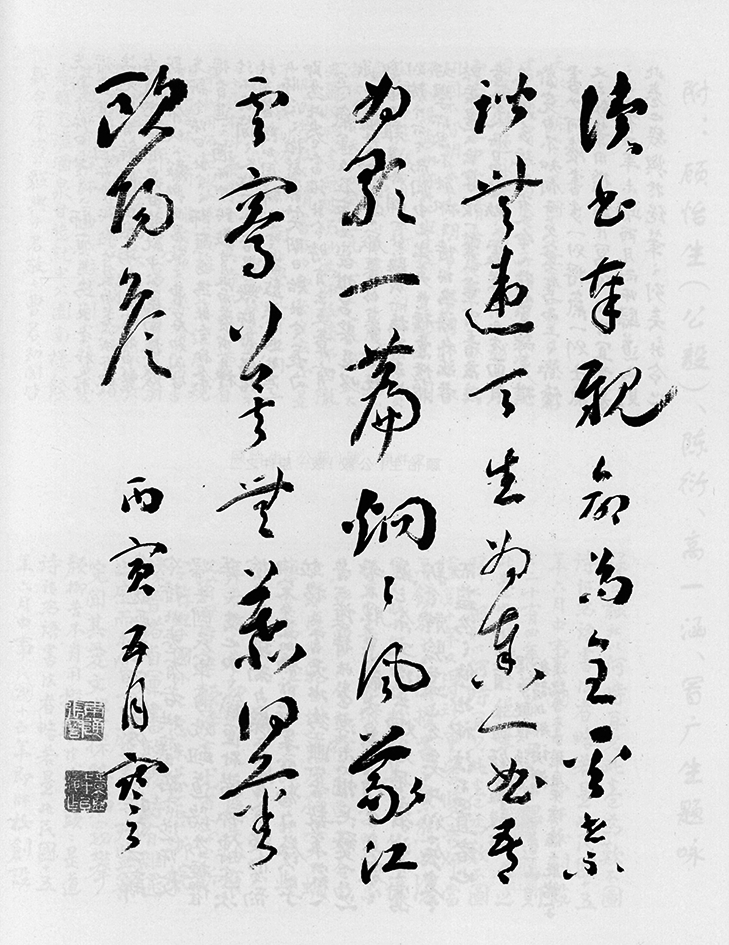 陈衍、高一涵的题跋侧重书法评价,如“草圣张颠笔有神,山阴妙腕更无伦”之类。难免溢美而流于俗套。倒是冒广生(鹤亭)更着眼于师生之间的深厚情谊:“啬翁久作琅山士,绝笔长谣墨尚新;增得人间师友重,间关一卷不离身。”“东坡白发扬州路,尚感欧阳国士知;难怪今朝王法护,抚琴一恸为钟期。”另有濮一乘题诗亦尚可读:“洵知老笔意殷殷,嘉话何殊白练裙;一任张芝夸绝艺,王家自数右将军。”“负笈江东路几千,濠南宾馆散如烟;知君展对增惆怅,绛帐尘封二十年。”