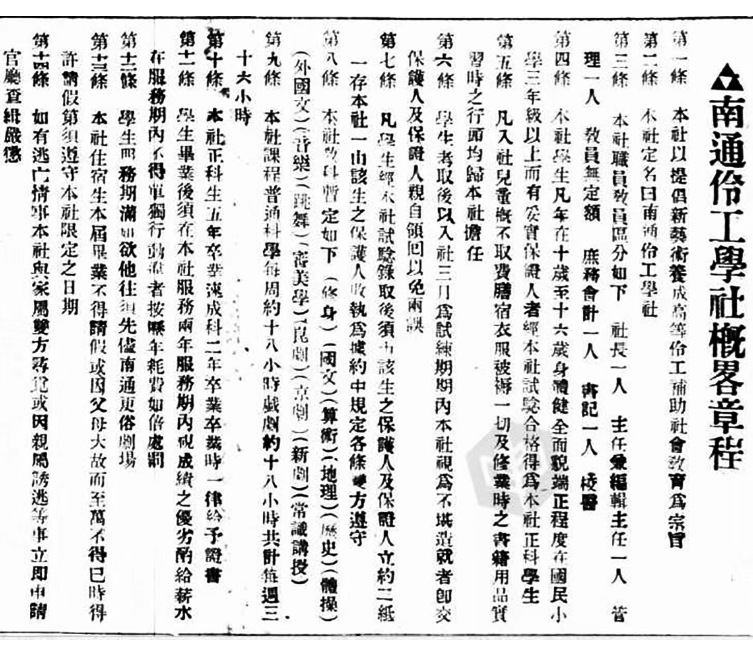 第二条 本社定名曰:南通伶工学社。