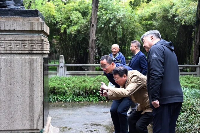 最后,一行人来到狼山北麓。赵绘沈绣之楼内,赵孟頫父子绘画和沈寿师徒刺绣的观音宝像,交相辉映,令人叹服。林溪精舍依山傍水,吴昌硕所题“磊落矶”,风骨犹存。这里曾经是张謇会友静思、吟赏山水的雅地,如今依旧清风拂面,文韵悠长。
