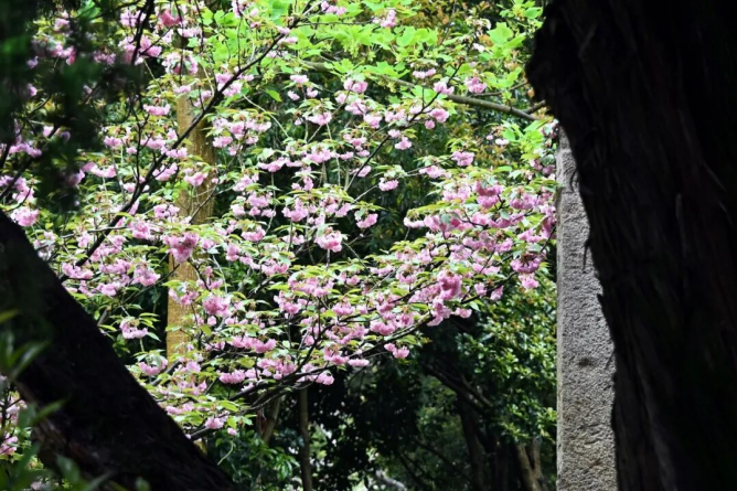 张謇墓墓门前樱花盛开。(摄影/梓童)