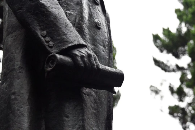 拍摄张謇铜像基座上的碑文。(摄影/梓童)