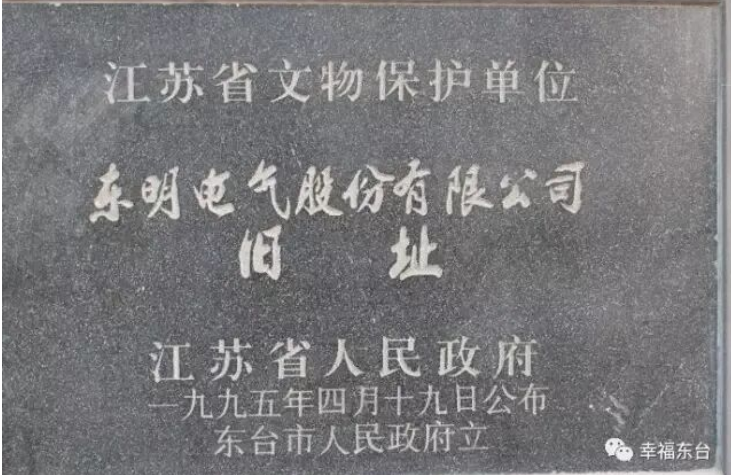 1917年,张謇收购荣泰电气公司,改组为东明电气股份有限公司,让东台成为苏北地区较早实现用电照明的县域之一,电力的引入为城镇工业发展、居民生活改善注入了近代化活力。1995年,江苏省人民政府认定东明电气股份有限公司旧址为省级文物保护单位,认为该建筑是一处具有重要纪念意义、教育意义和史料实物价值的近代建筑物,它反映了东台地方民族工业的发展史,是东台近现代工业发展的标志和象征。